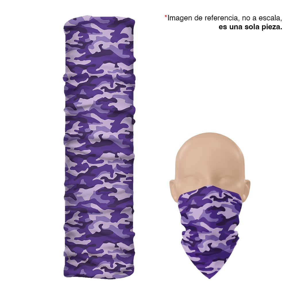 El patrón en morado combina diferentes tonos de forma armónica, logrando un efecto contemporáneo y femenino que destaca por su equilibrio visual. No es un estampado agresivo ni saturado; es un camuflado reinterpretado en una paleta suave y actual, pensado para quienes buscan algo diferente pero funcional. La caída de la tela mantiene la continuidad del patrón, haciendo que el diseño luzca bien tanto extendido como en uso. Es una opción ideal para quienes desean un estilo limpio, versátil y con personalidad.
