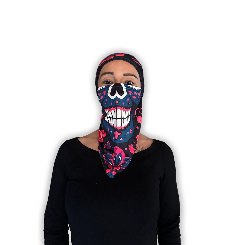 La microfibra permite un desempeño confiable en moto, bici, caminatas y escenarios urbanos. Es ligera, seca rápido y se pliega fácilmente para llevarla siempre a mano. La Balaclava Larga Catrina Morada es ideal para quienes desean una prenda funcional con un diseño intenso, artístico y lleno de personalidad. Es una pieza que acompaña tu camino con color, fuerza y una presencia que no pasa desapercibida.