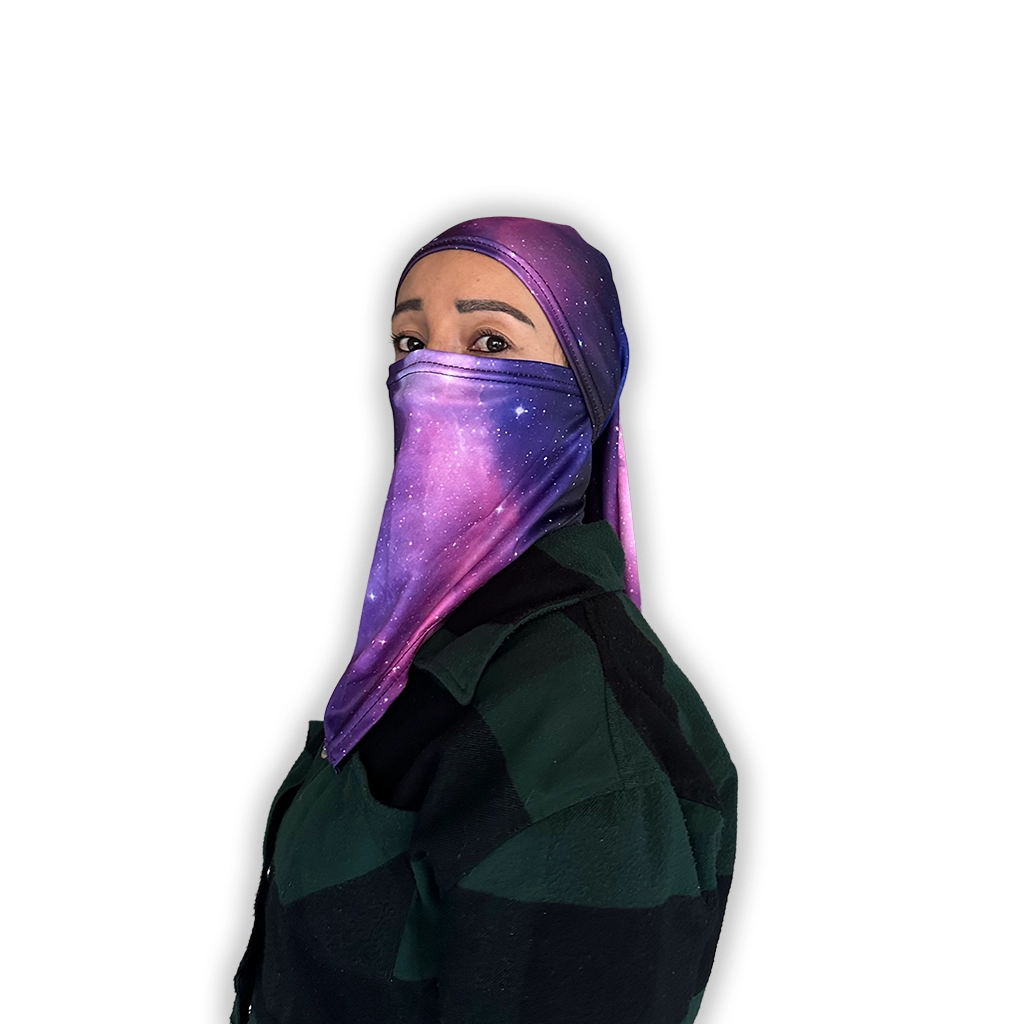 La Balaclava Larga Nebulosa está inspirada en la magia de una nube estelar real: tonos morados, rosados y violetas que se mezclan como si la prenda llevara un pequeño universo en movimiento. Es una interpretación artística suave, luminosa y expansiva, creada para mujeres que buscan una estética distinta, cósmica y elegante sin llegar al estilo de nuestra balaclava Space. Nebulosa tiene un carácter más etéreo, más delicado y con un enfoque visual centrado en la profundidad del color.