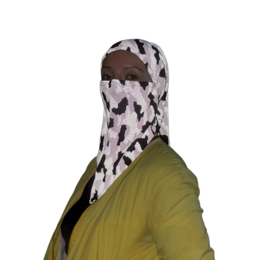 Las costuras reforzadas aseguran durabilidad, mientras su formato largo —con 90 cm de cobertura posterior— protege cuello, rostro y nuca del viento o el polvo. También puede usarse como pañoleta suelta durante el día, manteniendo su estilo discreto y sofisticado.