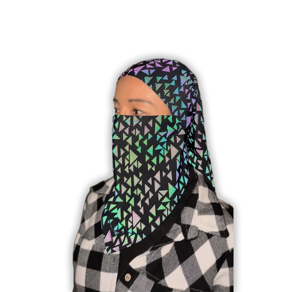 Balaclava larga Triángulos Rainbow Reflectiva en tela reflectiva premium