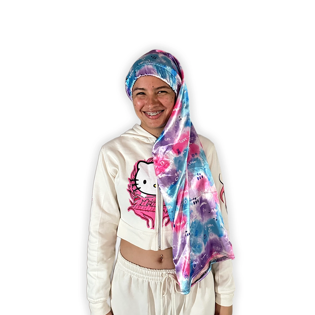 El cuello largo en satín Acuarelas combina cuidado, estilo y versatilidad en una sola prenda. Su diseño mezcla tonos rosados, lilas y azules en un patrón tipo acuarela que se ve femenino, fresco y diferente. Además, al ser doble faz, te da dos opciones para usarlo: un lado con el estampado Acuarelas y otro en rosa liso, más limpio y fácil de combinar según tu pinta o el momento.
